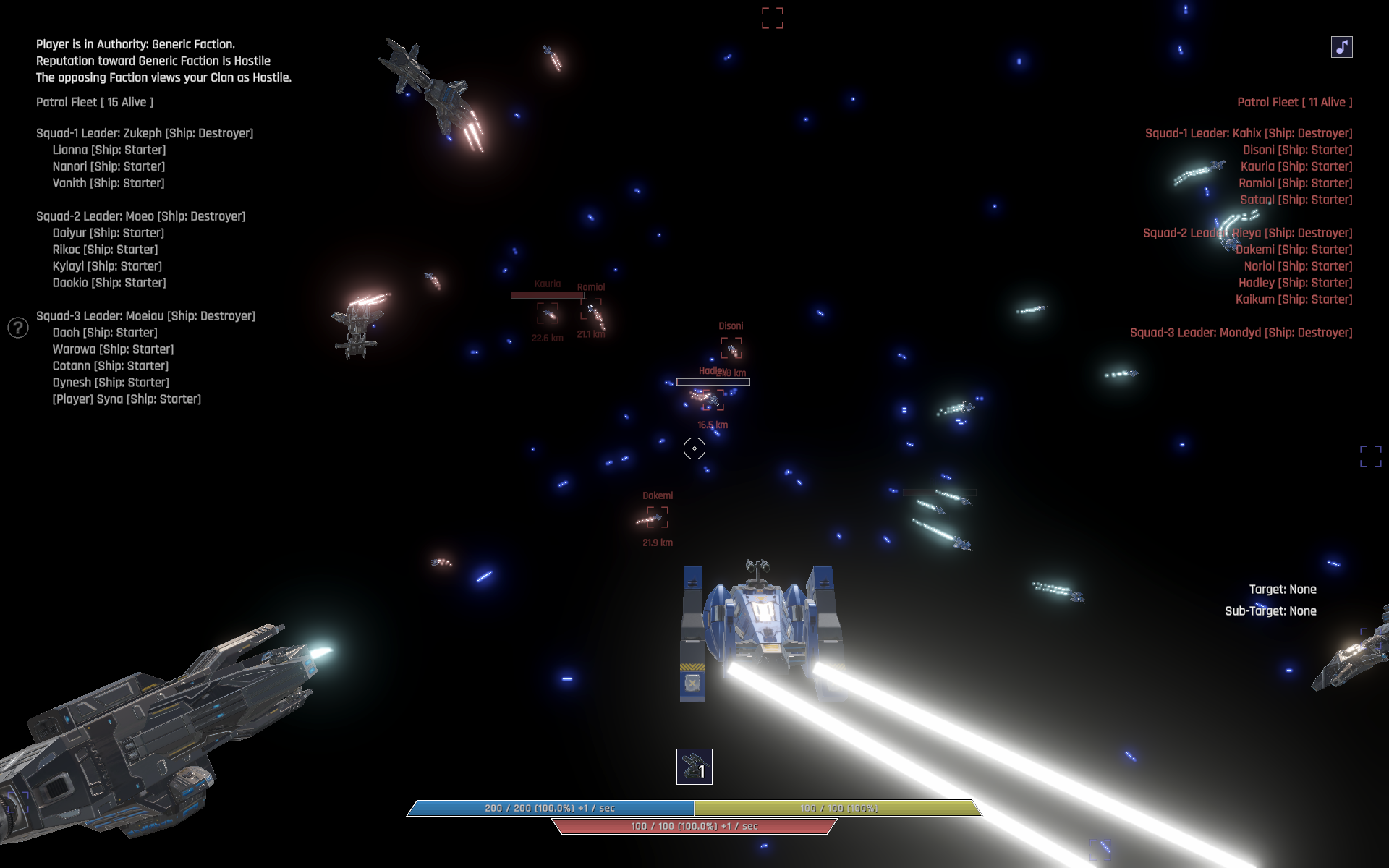 - Currently working on fleet/squadron combat AI and weapon/ship systems.